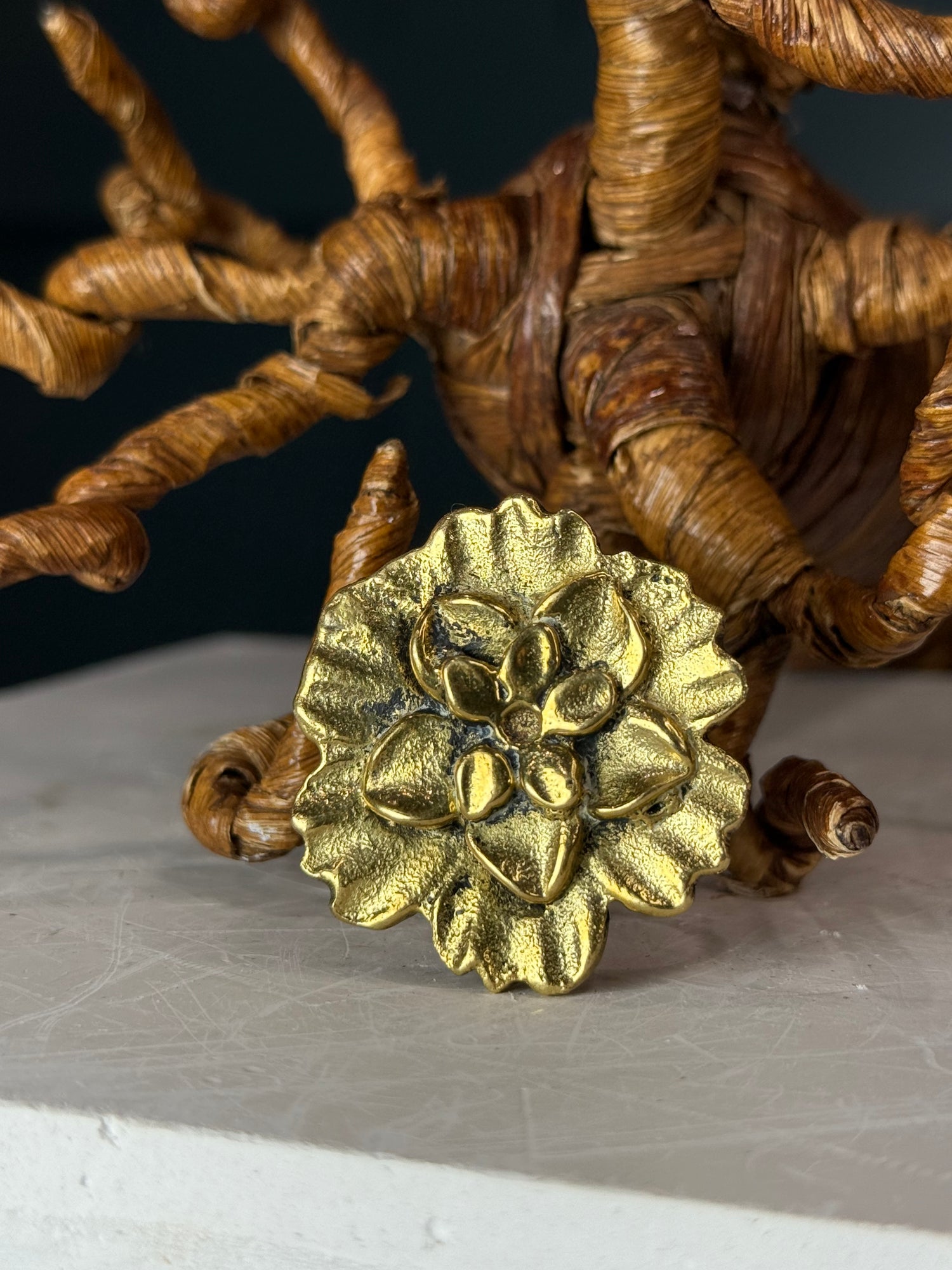 The Heirloom Signature Piece features your choice of a bold brass ring...